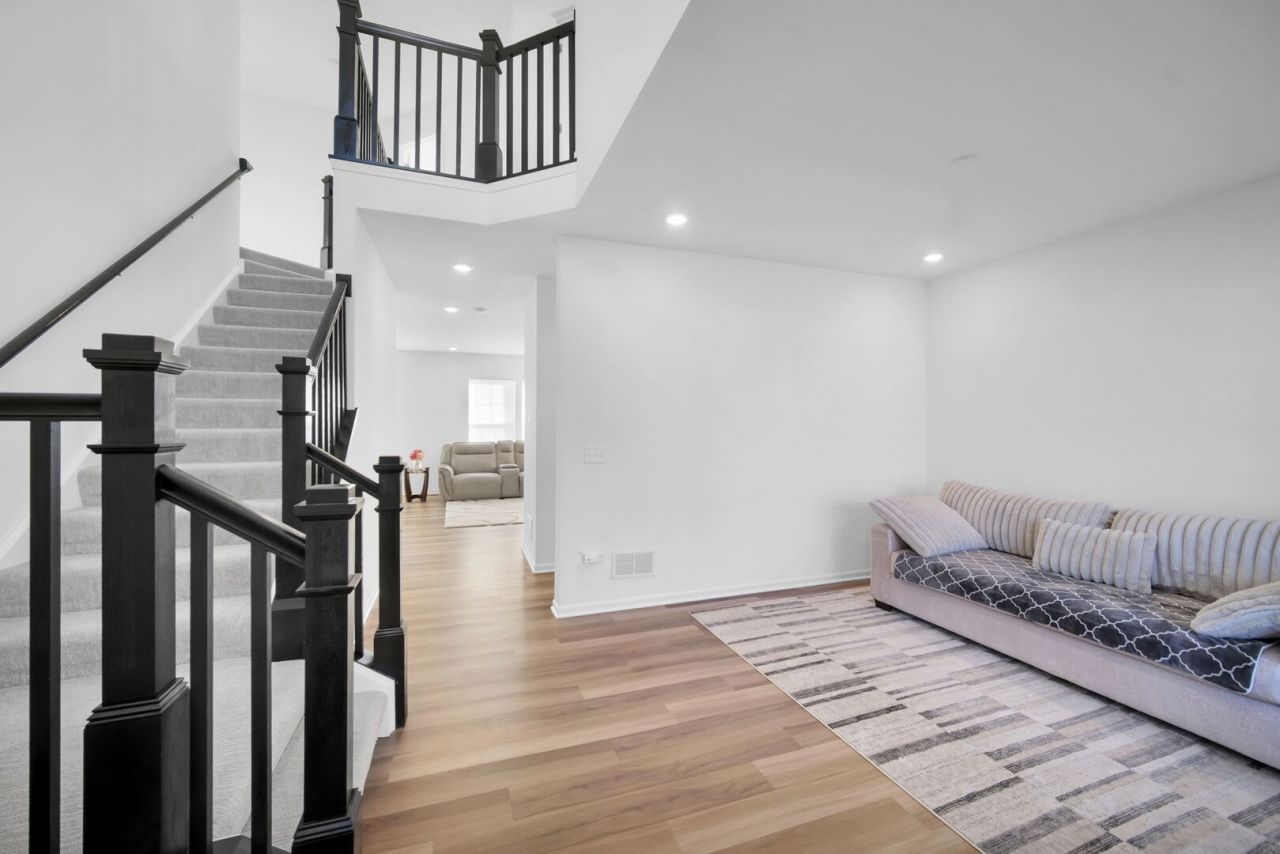 Welcome to the highly sought-after Dunbar model, a masterfully designed 3-bedroom plus loft, 2.5-bath home that perfectly blends timeless curb appeal with modern luxury and unmatched energy efficiency. A charming covered front porch leads into an impressive two-story foyer highlighted by an upgraded staircase with square posts and railings, opening into a sun-drenched, open-concept layout. The gourmet kitchen serves as the home's centerpiece, boasting 42-inch soft-close custom cabinetry, elegant quartz countertops, a spacious island, and a full suite of stainless steel appliances, all complemented by a whole-house water filtration system with RO and mineral drinking water. The second floor, finished with premium carpeting, features a luxurious primary retreat with a spa-like bath-complete with a soaking tub, separate standing shower, and double-sink quartz vanity-alongside a massive walk-in closet. Two additional generously sized guest bedrooms provide ample closet space and natural light, while the expansive, versatile loft offers the perfect footprint for a media room, play area, or an easy conversion into a 4th bedroom. A well-appointed laundry room with a custom window, utility sink, and high-end Samsung appliances adds daily convenience. Sustainability meets savings with a Fully owned massive 15 kW solar system for household power and EV charging, while the 9-ft ceiling basement offers a blank canvas for future finishing. Set on a private lot just minutes from Downtown Plainfield with nearby Pace and school bus access for all grades, this move-in-ready home offers the ultimate blend of comfort and location.