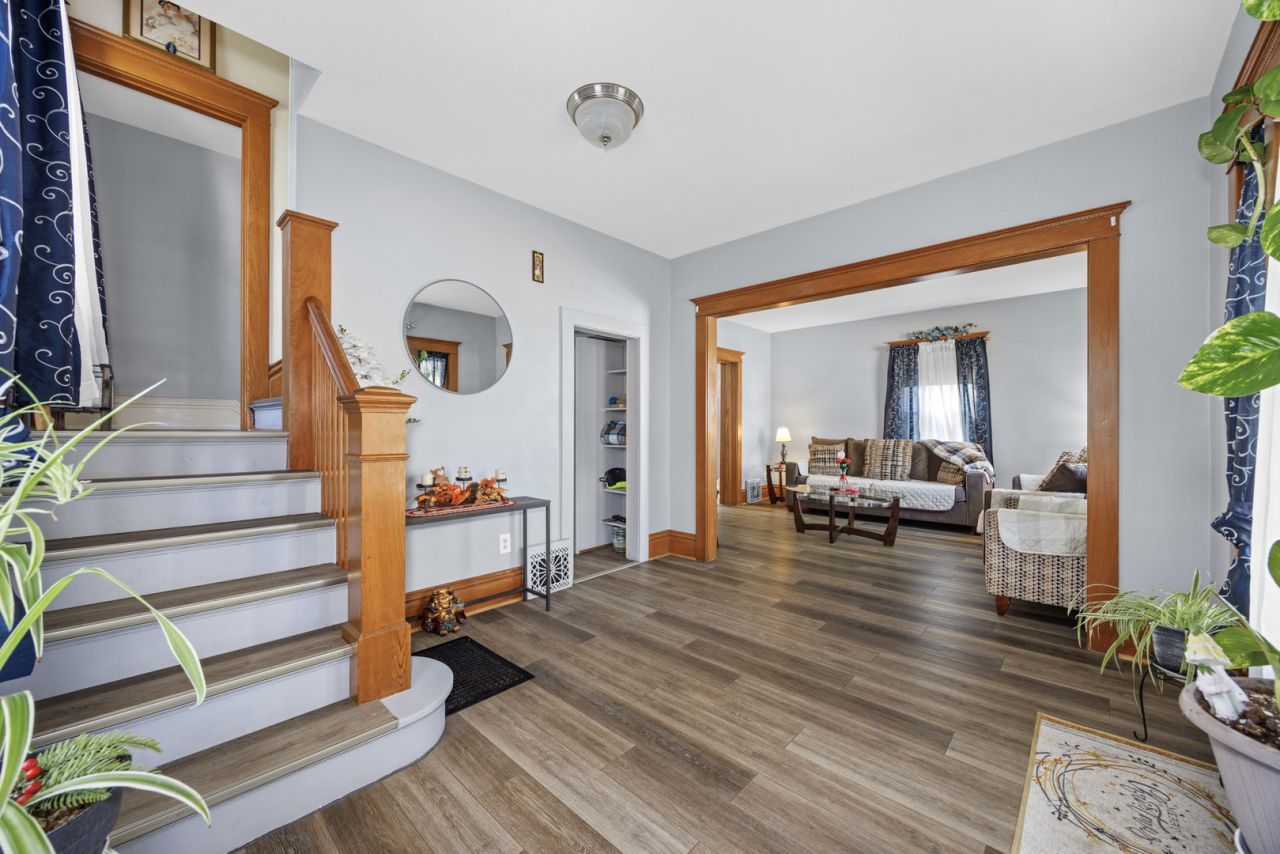 Beautiful American 4-Square Historic Tanner District Home! A huge foyer greets you as you enter, creating a nice open layout with 9ft. ceilings and plenty of natural light. A double staircase leads to the upper level which includes 4 true bedrooms, 1 full bathroom, and access to the partially finished attic for additional storage. Wood floors under both and upper levels. Screened porch located off the kitchen. Full partially finished basement. Basement has space for additional living, workshop, laundry with utility sink, as well as toilet and shower. A great start for furthering your remodeling ideas! New Furnace & AC 2022, Hot Water Heater 2023. Being sold AS IS.