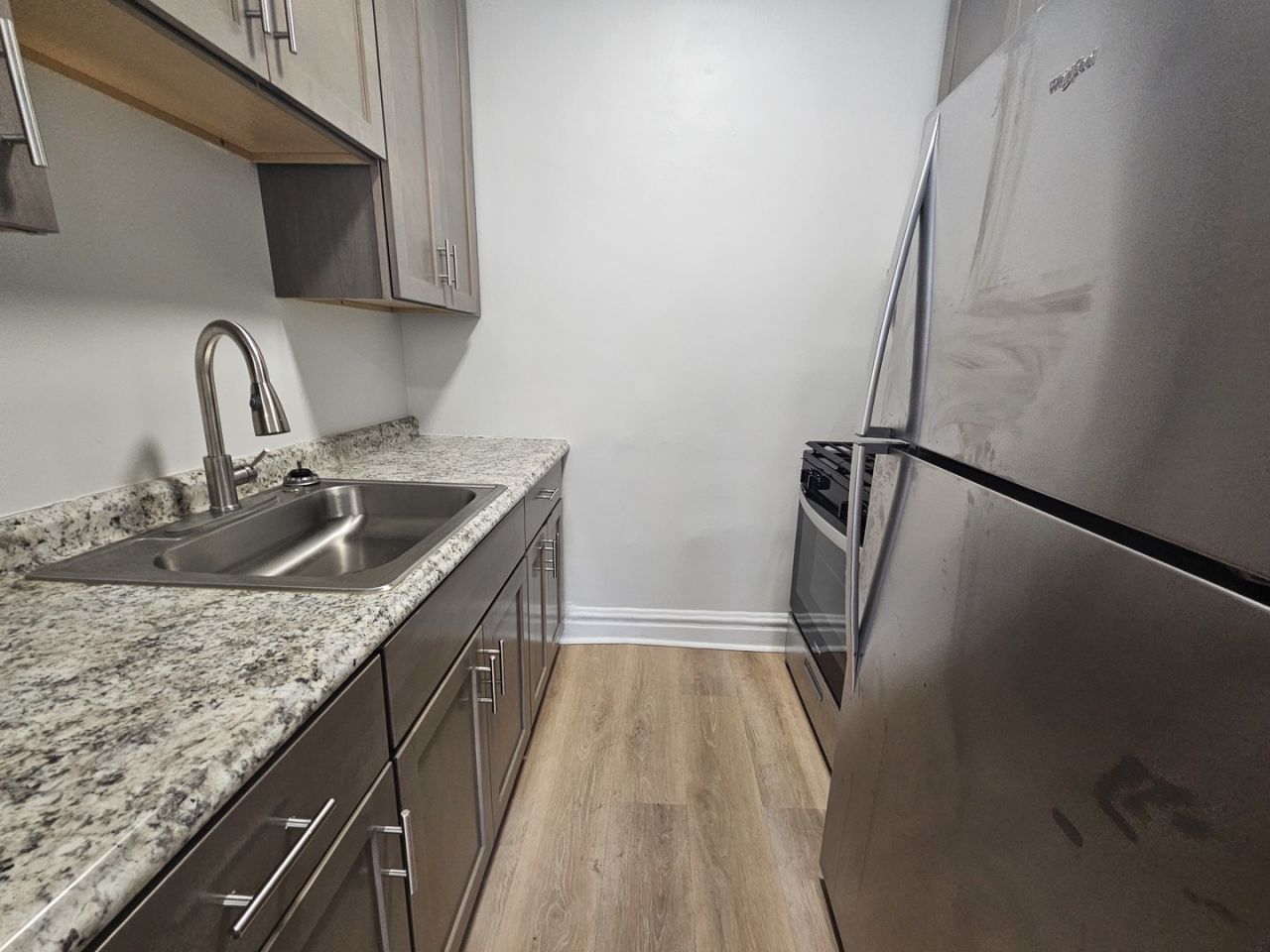 Fully Renovated Studio Apartment in Albany Park. This beautifully rehabbed studio features a brand-new kitchen outfitted with modern cabinets and appliances, freshly sanded hardwood floors that shine with character, a completely updated bathroom with stylish finishes and separate kitchen with room for a table. The tenant is responsible for electric and gas, which covers both heating and cooking. Hot water is included in the rent. Ideally located in the heart of Albany Park, you're just a short stroll from Kimball Station on the Brown Line-offering easy access to everything the city has to offer. Application fee is $40 per adult. Move-in costs include a $300 fee per adult and first month's rent, both due upon lease signing. Laundry facilities are conveniently located two blocks away at Albany Park Wash & Dry Coin Laundry, located at 3516 W Lawrence Ave.